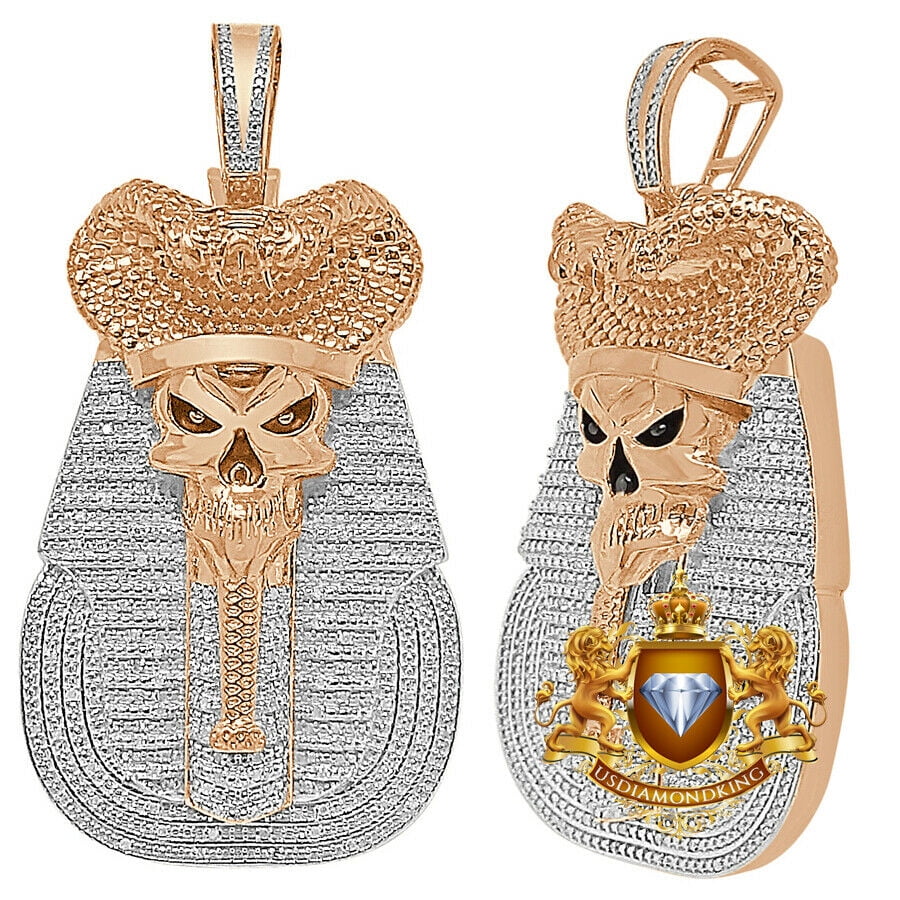 31 Grams Real Diamond Egyptian King Tut Death Skull Pharaoh Charm Pendent 2 5 Over Rose Gold Finish Walmart Com